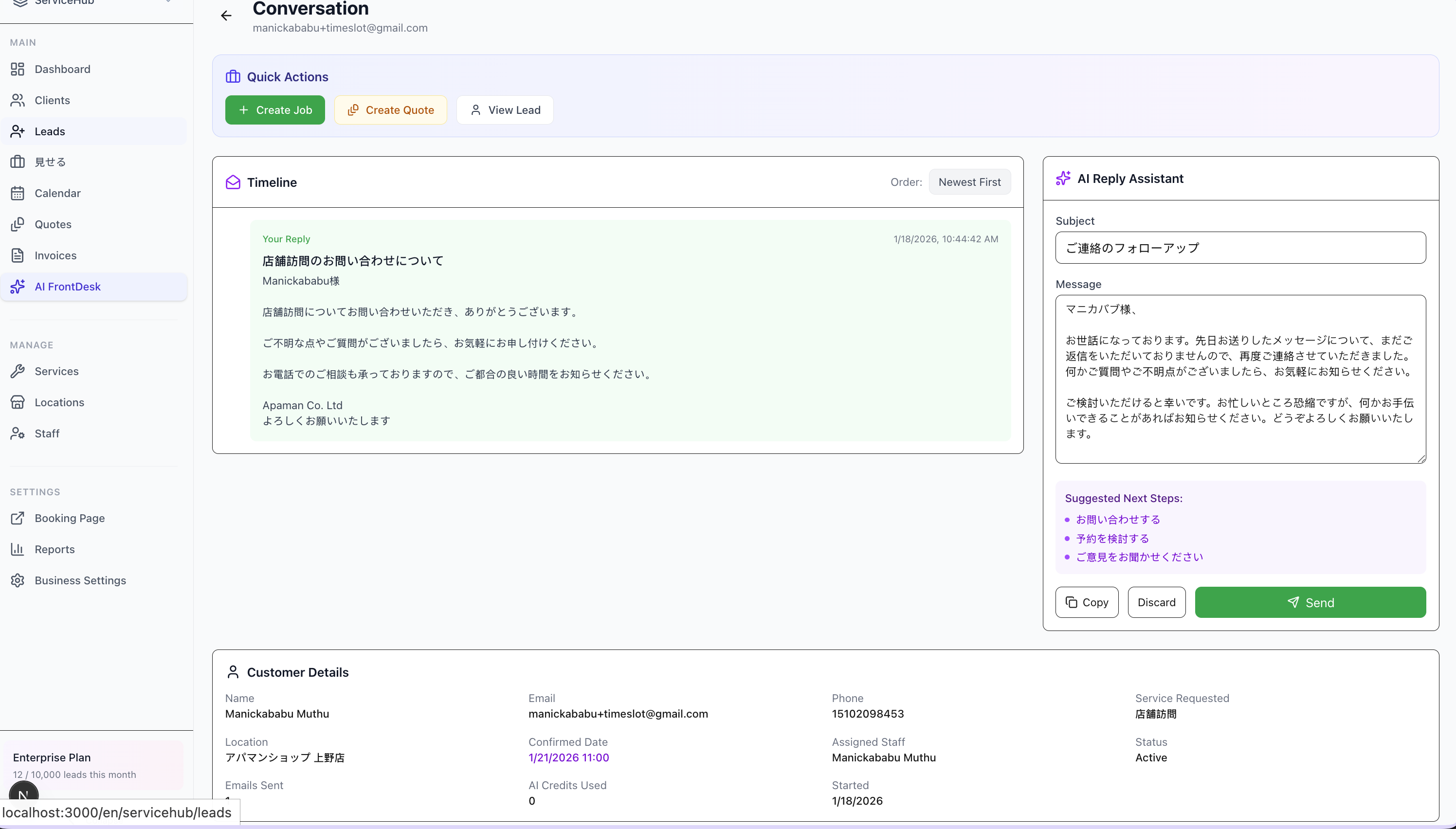El lead avanza a quote, appointment, job o follow-up con historial completo.